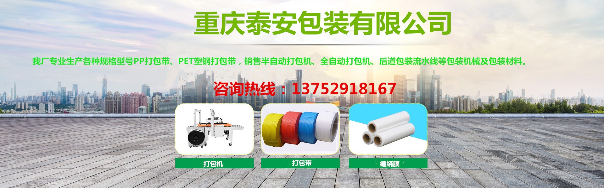 重慶泰安包裝有限公司(電話:13752918167)是專業(yè)生產各種打包帶、塑鋼帶、纏繞膜、膠帶,銷售打包機、纏繞機、封箱機、無人化流水線等各種包裝機械、包裝制品、包裝材料一體化的優(yōu)秀包裝企業(yè),始終堅持“穩(wěn)步擴張、精益管理”的方針,堅持“換位思考,了解客戶需求,主動服務,超越客戶期待”的服務理念,以熱忱的服務、優(yōu)良的品質、靈活的機制、創(chuàng)新的技術,向各新老客戶提供最優(yōu)質、優(yōu)價的產品和服務,具有對系列產品自主研發(fā)創(chuàng)新能力,能夠獨立根據(jù)用戶要求制版打樣。近十年來受到廣大客戶的信任,產品銷售遍及全國各大城市,與客戶形成自由平等、互利互惠的戰(zhàn)略合作關系,平均年銷售量2000多噸。